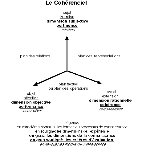 La structure cohérencielle permet, elle, de mettre en évidence l'ensemble des facettes de l'immatériel. Evaluer une réalité, c'est donc prendre en compte à la fois les dimensions subjective, objective et rationnelle. Renoncer à une dimension, c'est invalider l'évaluation12.